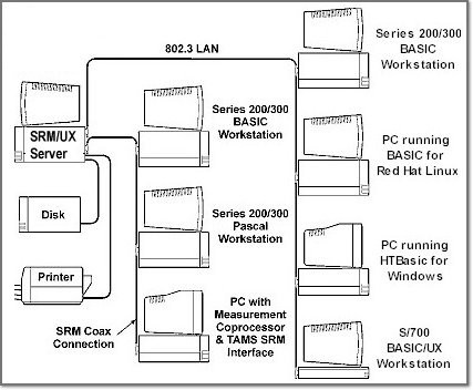 SRM/UX is supported on almost all HP-UX Workstations or Servers. (Series 300, 400, 700, 800) and Intel based servers running specific kernels of Red Hat Enterprise Linux. All PCs support LAN connections, and Series 300 can support LAN and SRM wire. SRM gateways can be established to connect SRM systems to SRM/UX networks. The E2087 SRM/UX DLL allows PCs running HTBasic for Windows to be full SRM/UX clients. Contact Tech Soft for additional configuration details.