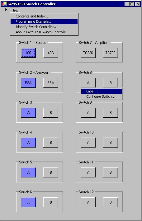 Mehrere Switch-Controller können gleichzeitig verwendet werden (automatische USB-Identifikation) und die Online-Programmierbeispiele für C, Visual Basic, LabView und VEE führen schnell zu Ergebnissen.